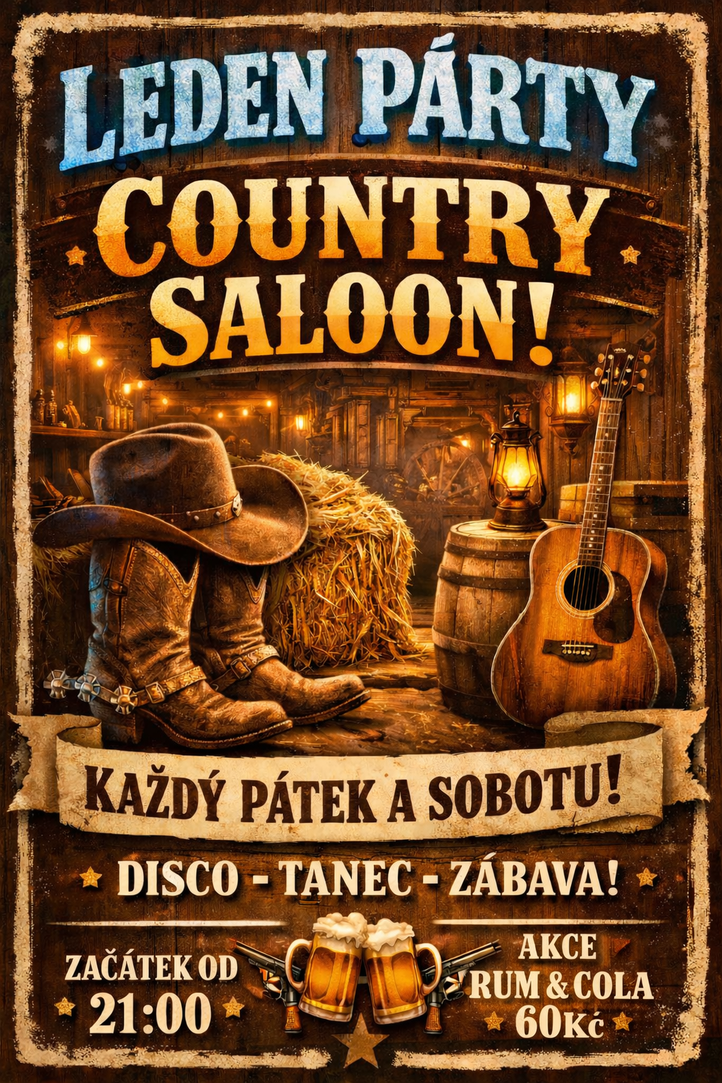 Restaurace Country Saloon ve dřevěném stylu se nachází v centru Jablonce nad Nisou. Máme pro zákazníky velkou kapacitu míst, mezi nimi patří salonek, velký sál, zimní zahrada a letní terasa k dizpozici pro nejrůznější akce. DISCO PÁTEK SOBOTA 21:00 - 04:00